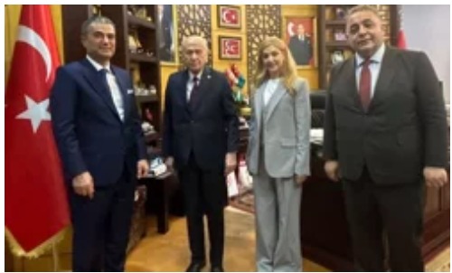 Bahçeli, Murat Yancı’ya eşlik eden CNN TÜRK Ankara Temsilcisi Dicle Canova ile Kanal D Ankara Temsilcisi Zafer Şahin’den oluşan Demirören Medya Grubu heyetini MHP Genel Merkezi’nde ağırladı.